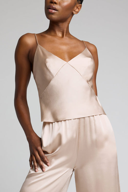 Customers say this silk cami has mixed sizing experiences, with some finding it runs big while others note it's too tight. The straps present occasional issues, with reports of them slipping off shoulders and one breaking after washing. Many reviews highlight the fabric's luxurious feel and comfortable fit. Common feedback includes praise for the flattering drape and versatile styling options. The darting detail receives positive mentions for its body-contouring effect. While some note concerns about stitching comfort, most users appreciate the overall construction and fit, particularly those with longer torsos.